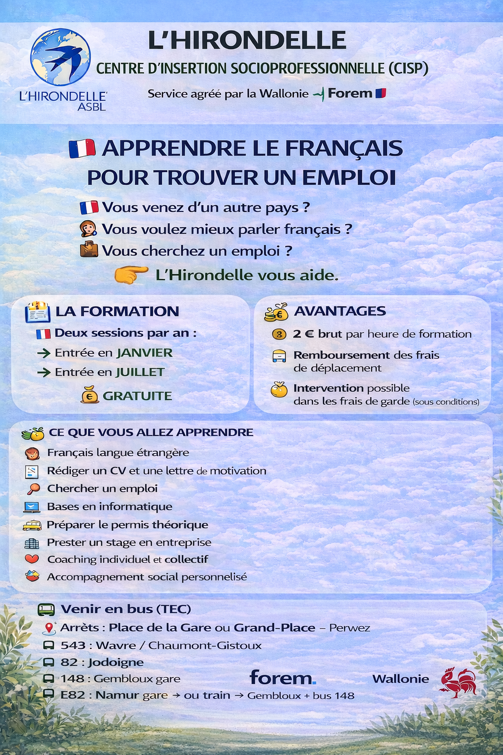 🌐 Plus d'informations : https://hirondelleasbl.be